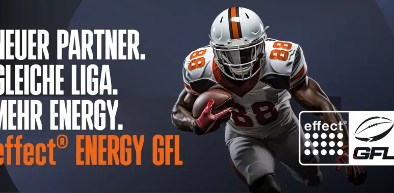 Ab diesem Jahr wird die höchste deutsche Bundesliga im American Football den Namen effect® ENERGY GFL tragen! Die dazu getroffene Vereinbarung hat eine Laufzeit von zunächst drei Jahren und umfasst neben dem Namensrecht weitere Elemente zur gemeinsamen Vermarktung und Produktplatzierung. Mit seinem Fokus auf Performance, Lifestyle und urbaner Kultur sieht effect® ENERGY den American Football als ideale Plattform, um neue Zielgruppen zu erreichen und be- stehende Engagements im Sport auszubauen.