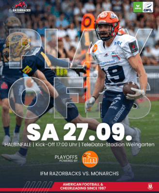 GFL Team Playoff-Fieber in Weingarten: ifm Razorbacks empfangen die Kiel Baltic Hurricanes 17. September 2025